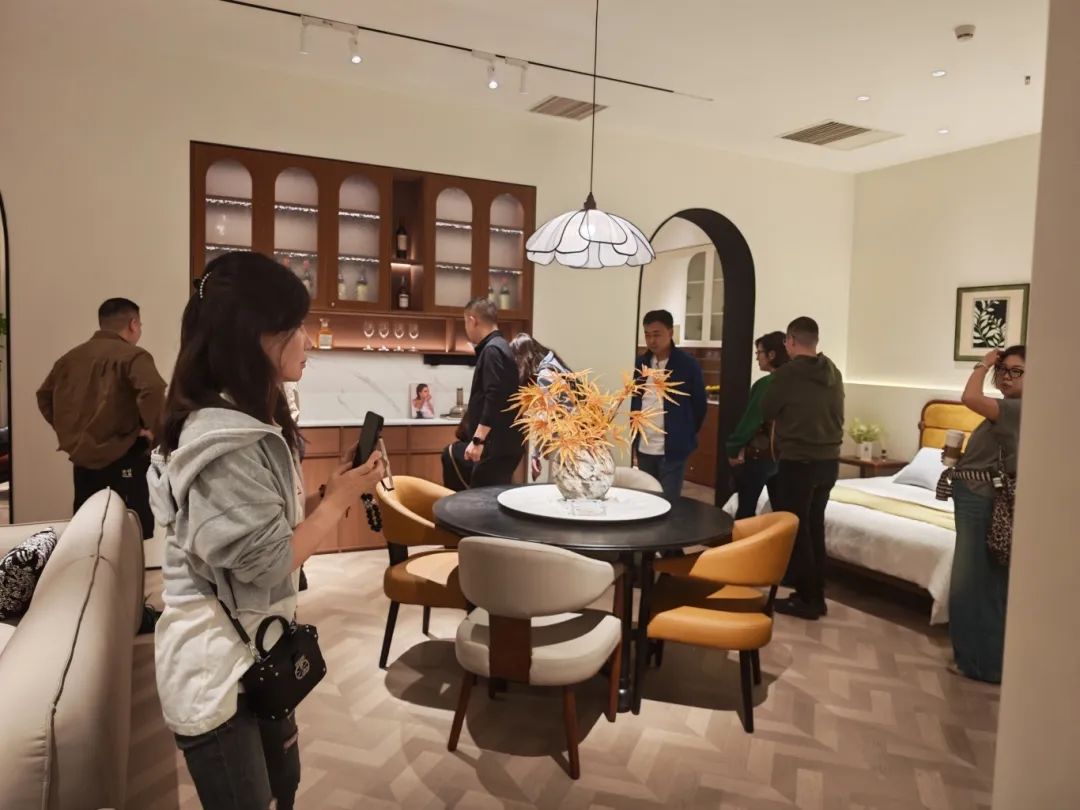 新品发布品鉴会现场,350vip8888新葡的京集团中古全案凭借独特的空间布局,创新的时尚设计,优质的材料细节以及精心的场景营造,吸引了全国优秀经销商及业界嘉宾们的目光,他们沉浸在高级的美学世界里,感受创新与品质交织的魅力。350vip8888新葡的京集团中古展厅里人潮涌动,众多经销商都对中古全案新品的创新设计称赞有加,现场签约不断,气氛热烈。