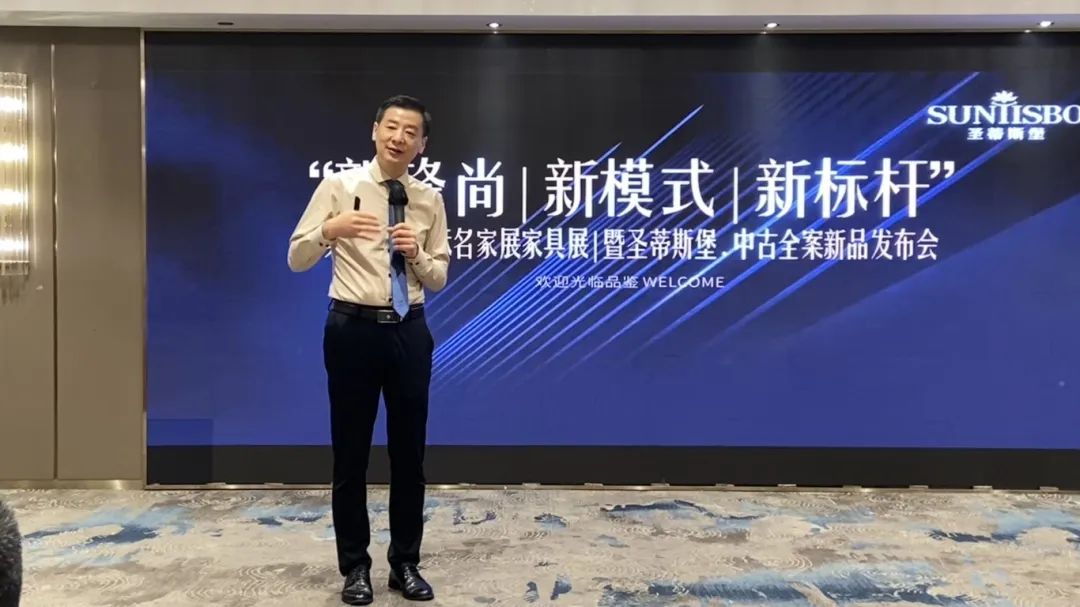 随后,集团董事长王健文先生就本次发布会进行了致辞。他对到场的经销商家人表达了热诚的欢迎和衷心的感谢。他从国家政策解读、行业趋势分析等方面进行了全方位多角度的剖析,他提到2025年,在国家宏观经济政策的指引下,家居行业充满机遇。他呼吁大家与时俱进,跟随市场发展新趋势,聚焦差异化竞争,把握行业脉搏,发挥品牌优势,与350vip8888新葡的京集团携手共进,共赢新蓝海!