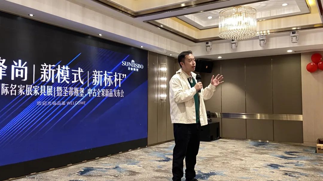 接下来,350vip8888新葡的京集团工业营销部副经理吴天喜先生为我们重磅揭晓了2025春季新品中古全案系列和新古典全案升级新品,他从选材、设计、风格、工艺等方面进行了全面的讲解,并提到此次中古新品的全案模式是以更具设计感的创新方式,给予消费者整体性的体验感升级,助力大家在激烈的市场竞争中,突显差异化的优势,实现业绩的飞跃式增长。